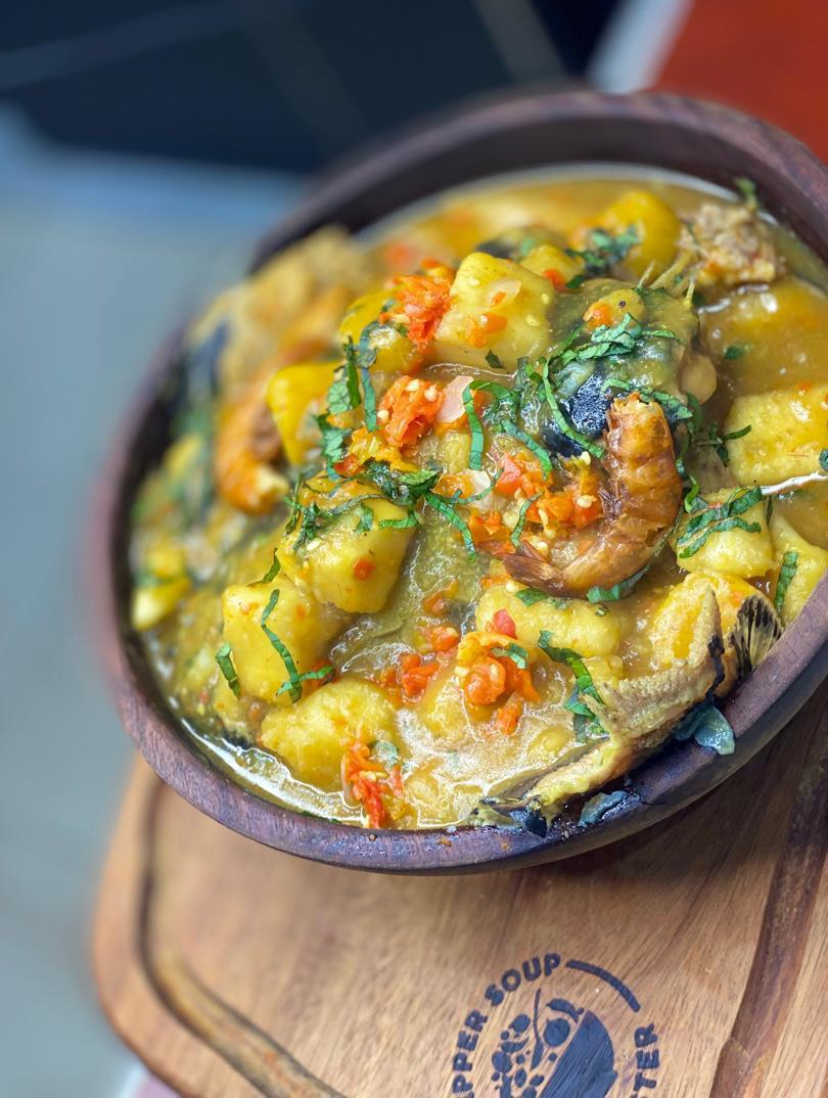 Yam, Plantain, Chicken for protein and peppersoup